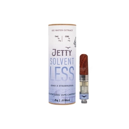 Jetty Solventless Vape is made from live rosin that’s extracted using only ice, water, heat, and pressure. Purified for maximum potency, it delivers the true essence of the plant from start to finish. We have yet to find a better pre-filled vape cartridge than this one. Not only does it taste exactly like flower, but we love the fact that no solvents were used to make it! GMO x Strawnana is a perfect blend of pungent spice with a sweet, smooth and fruity finish. This indica produces a balanced yet powerful effect with a long lasting body high.